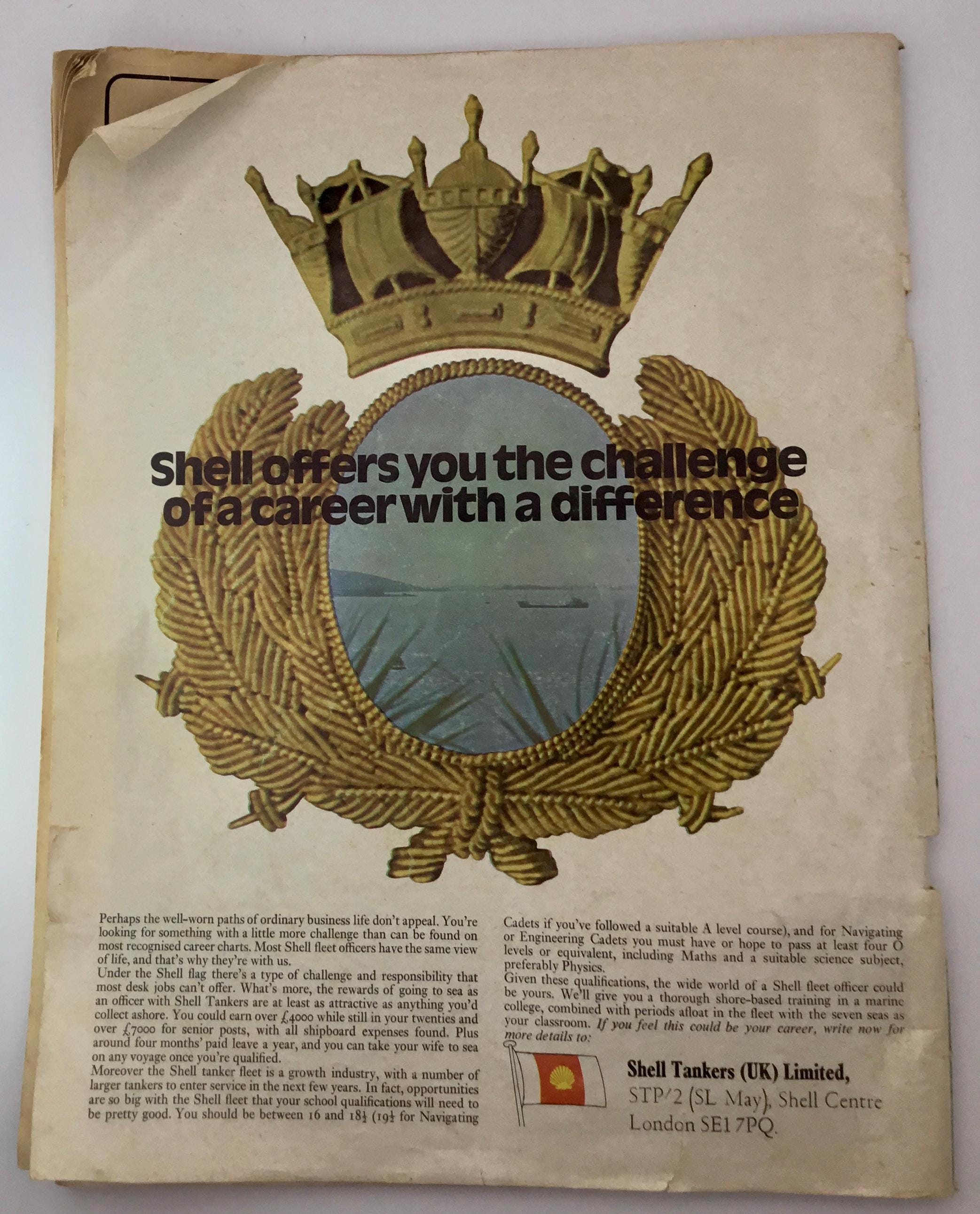 School Leaver Magazine Vol.5 No.9 1973-4 A Dominion Press Publication Used In acceptable condition: discoloured yellowing of pages, dog-eared corners, small tears on front and back cover. UK Job Advertisements University Listings Qualification Plans Includes job adverts for the following companies: Post Office, Department of Trade, Department of Industry, Royal Navy, Ministry of Defence, Policing, Matthew Hall Group of Companies, Army Officer, BBC, Chamberlain & Willows Chartered Surveyors and Estate Agents, TV, Film & Theatre Academy of London, HM Customs and Excise, Chartered Insurance Institute, Corporation of Insurance Brokers (CIB), Stewart Wrightson Limited, National Employers’ Mutal, Sun Life Assurance Society Limited, Equity and Law Life Assurance, Bain Dawes Limited, Liverpool Victoria, United Friendly Insurance, Equitable Life Assurance Society, Cooks (Thomas Cook and son travel), department of the environment, Preston and Chorley Nursing School, RAF, Royal Victoria Hospital Folkestone School of Nursing, Prince of Wales and St Ann’s general hospitals, etc. Also includes a chili con carne (yes printed with one L). 1x magazine