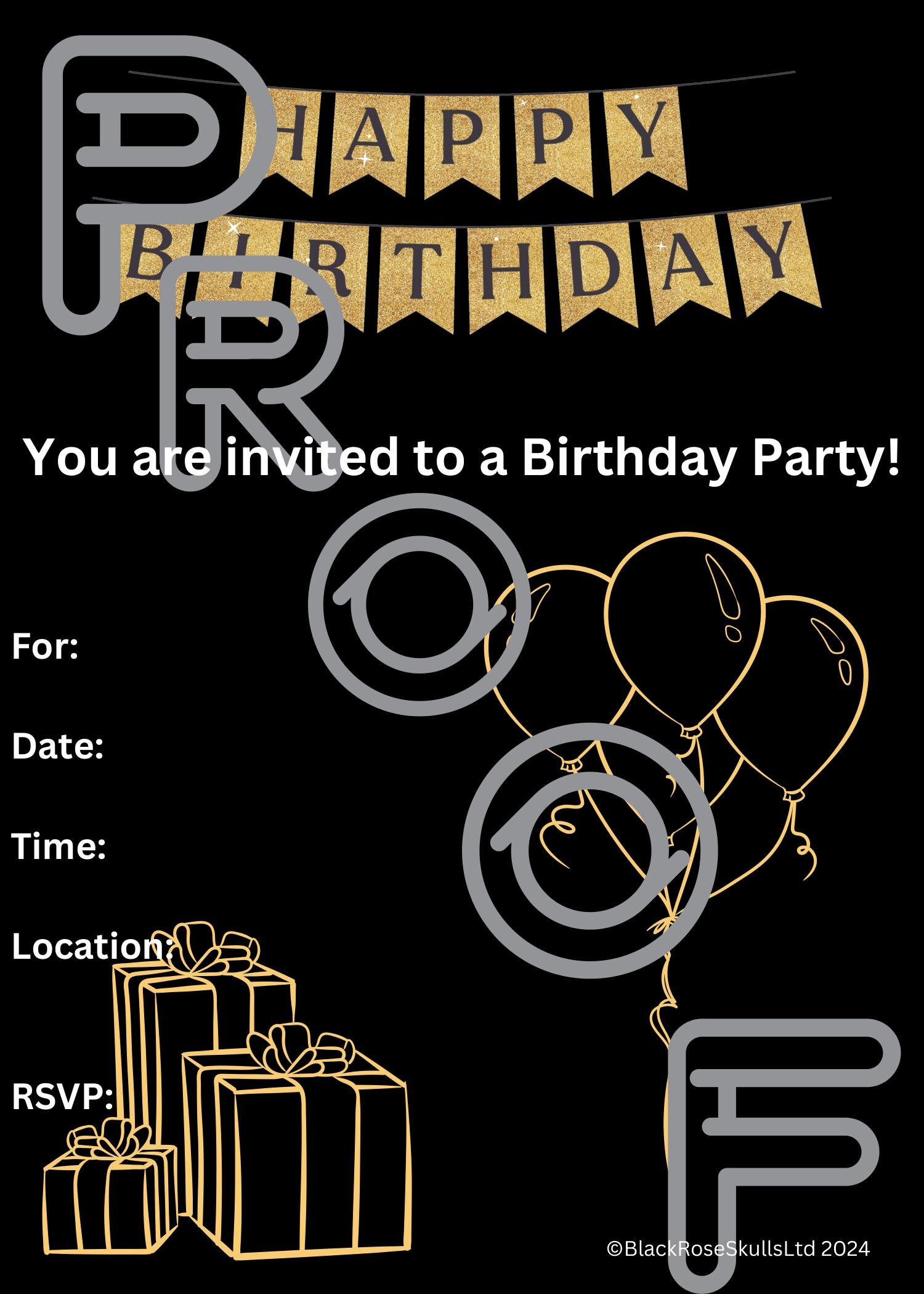 Black & Gold Birthday Party Invitation: Simple Fill-In PDF (Digital Download)