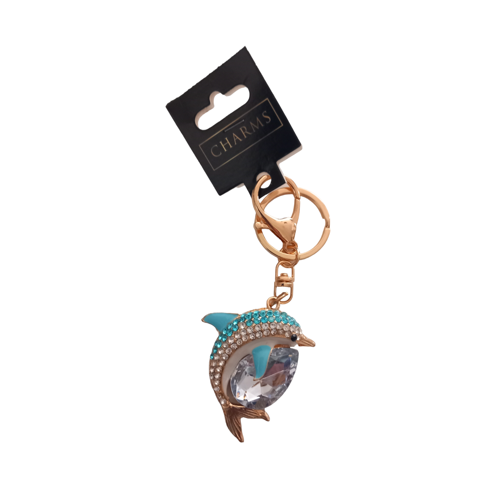Charms Dolphin Handbag Keyring 25 Charm Blue Gold Fashion Faux Gem Bag Shiny