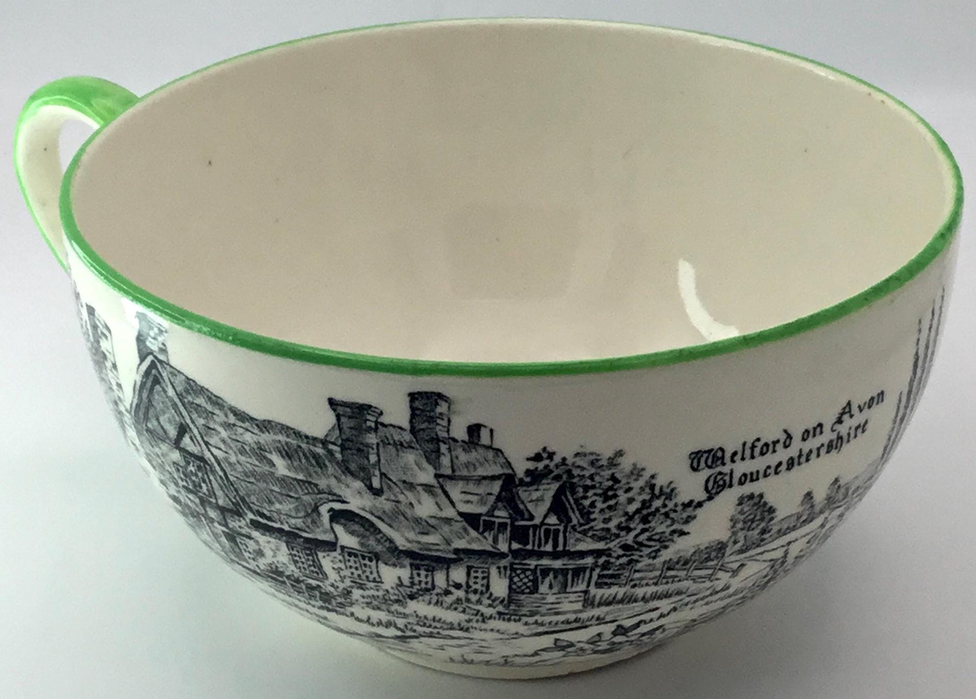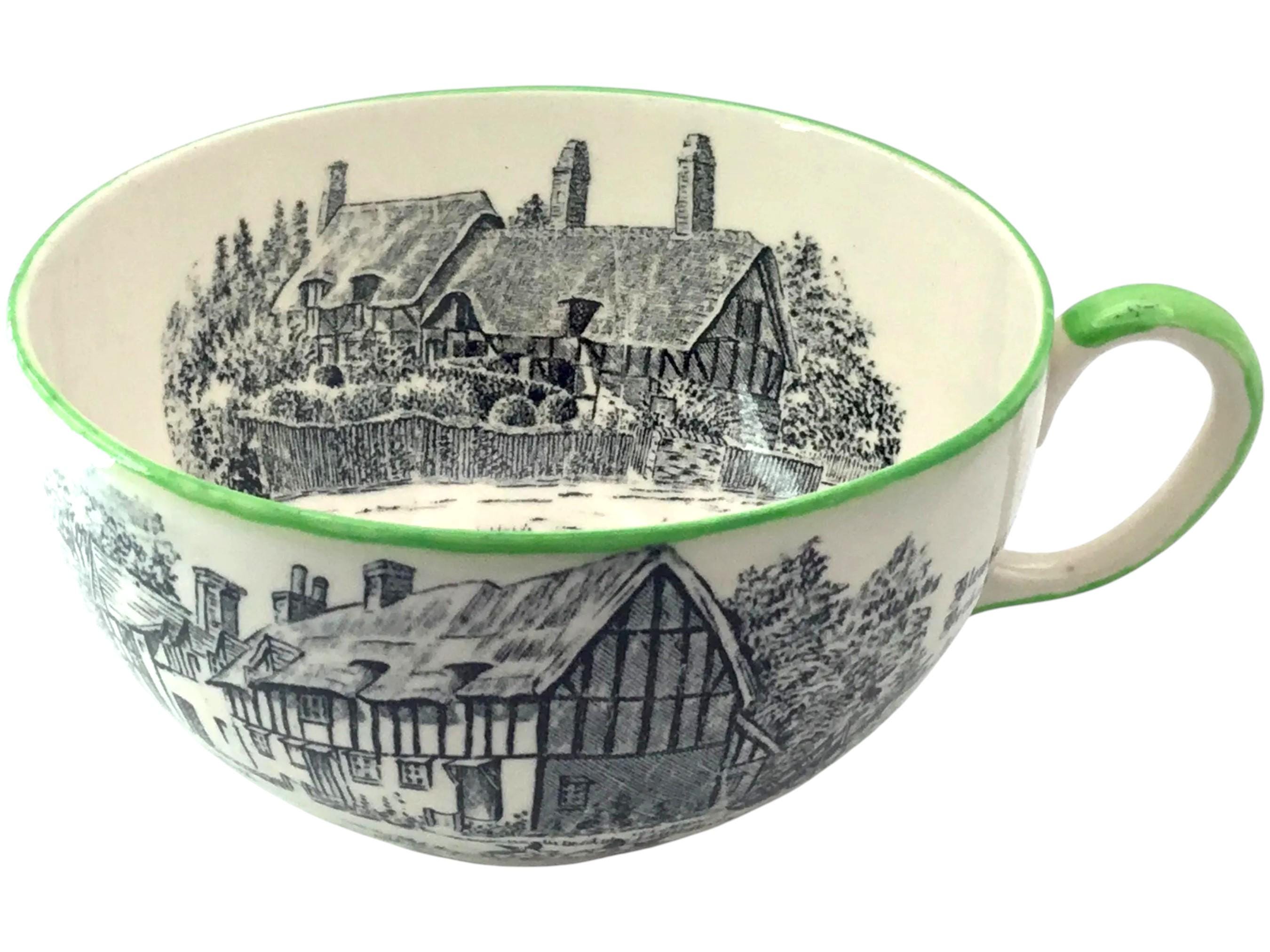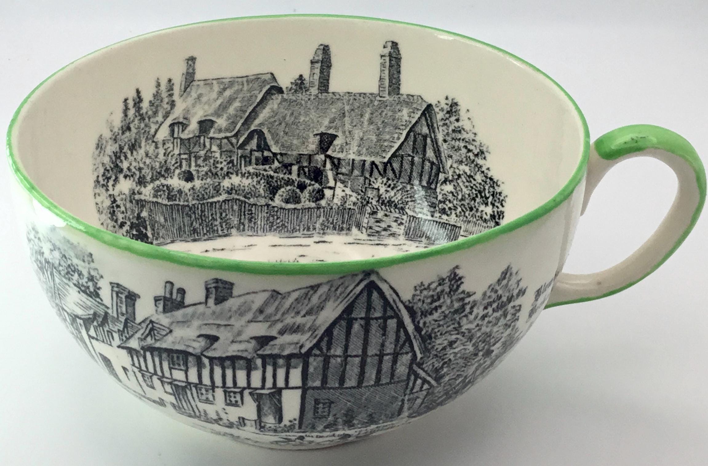 Crown Devon Fieldings Old England Cup, Black and White Village Scene