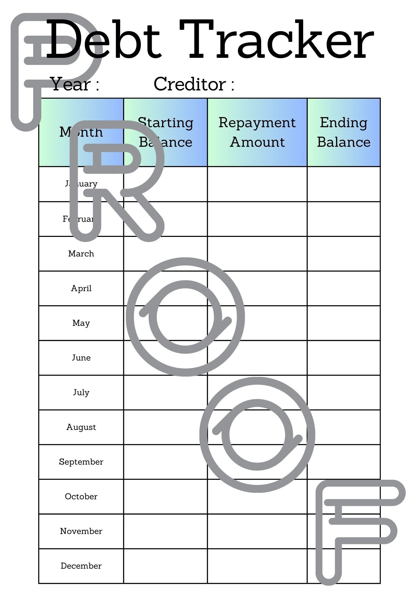 Debt Tracker Printable: Monthly Repayment Progress (PDF Download)