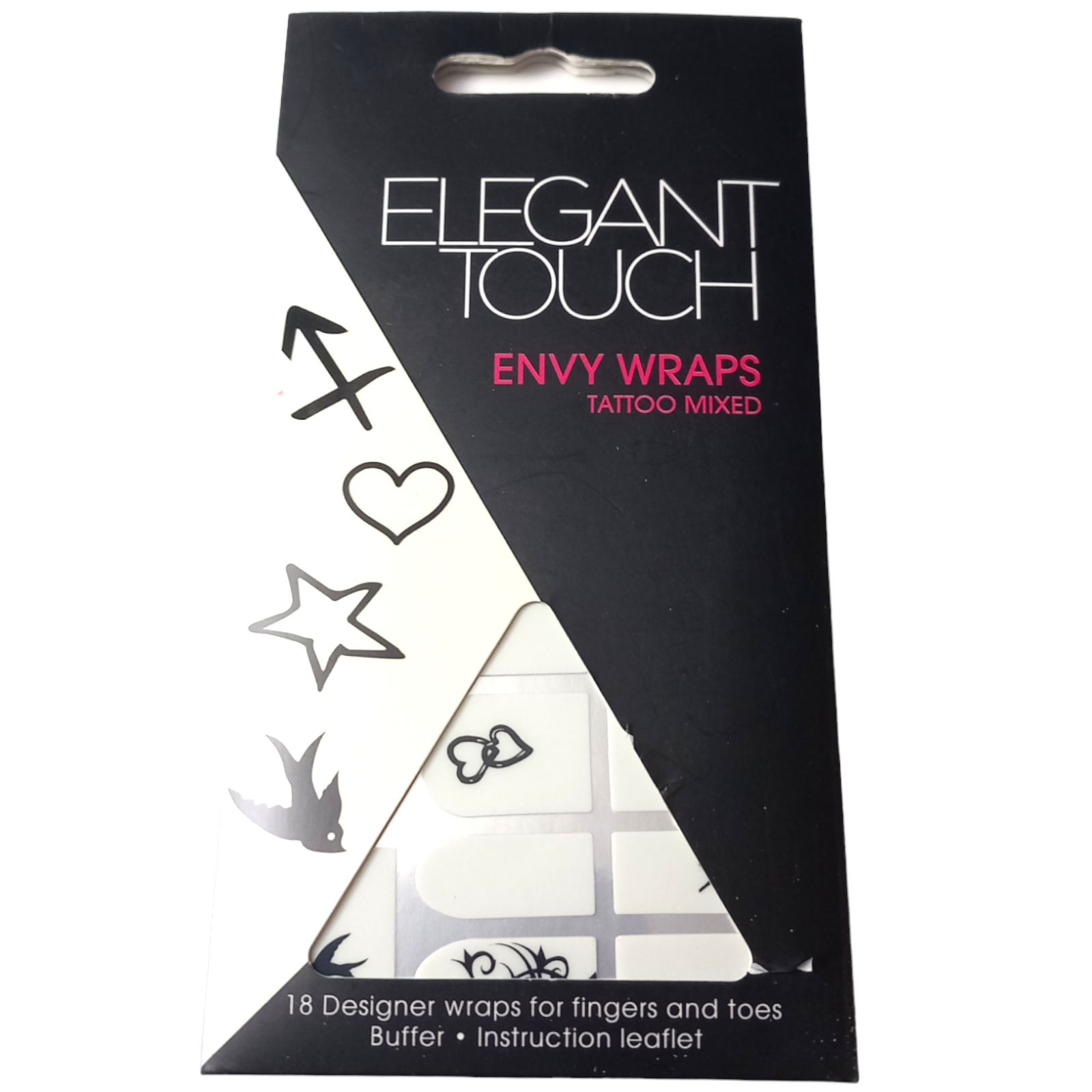 Elegant Touch Envy Nail Wraps Tattoo Mixed Designer Nails Quick Easy Trim Go Tip