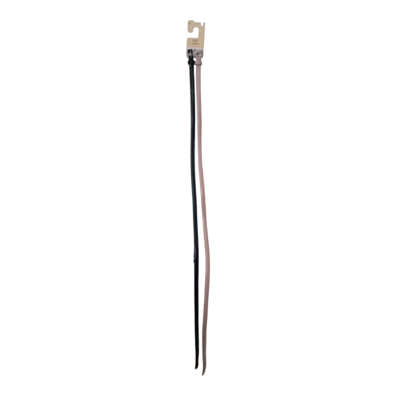 F and F 2Pack Ladies Belts Black Blush Pink Large Patent Polyurethane Skinny