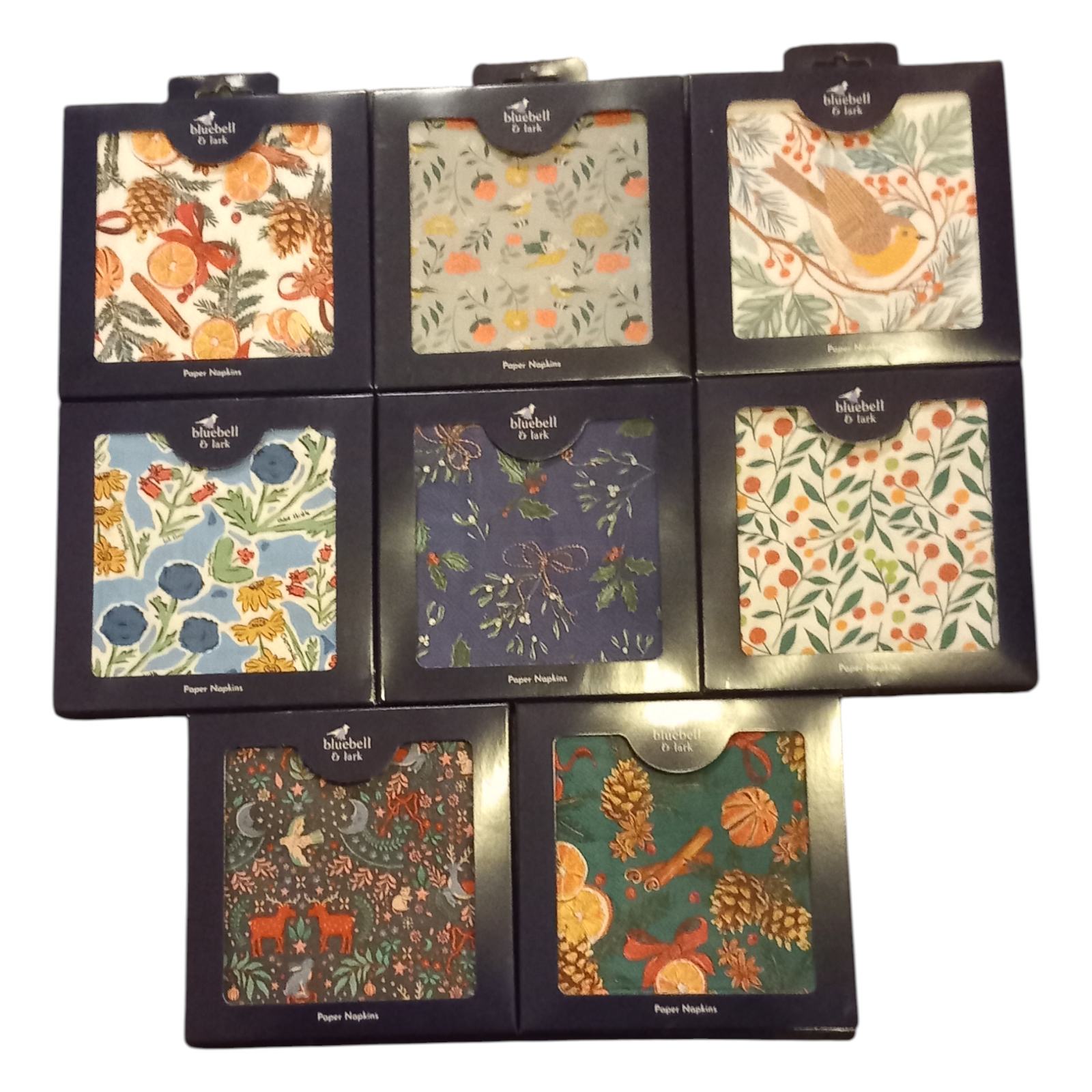 Festive Paper Table Napkins - Bluebell & Lark Plastic-Free 3ply 33cm x 33cm Xmas