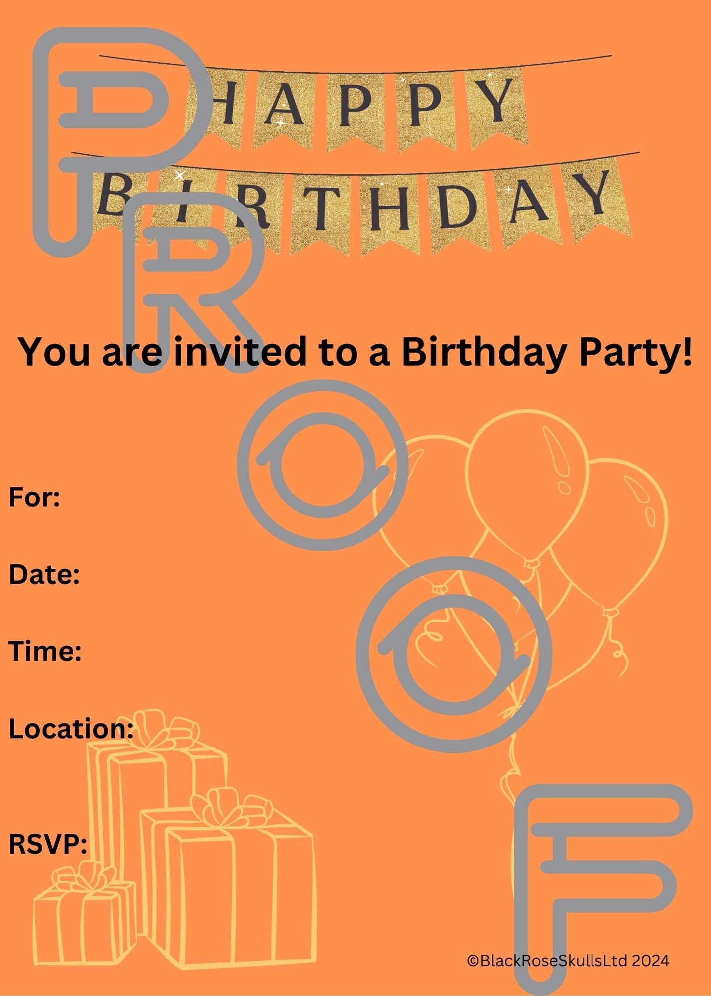 Gold & Orange Birthday Party Invitation: Simple Fill-In PDF (Digital Download)