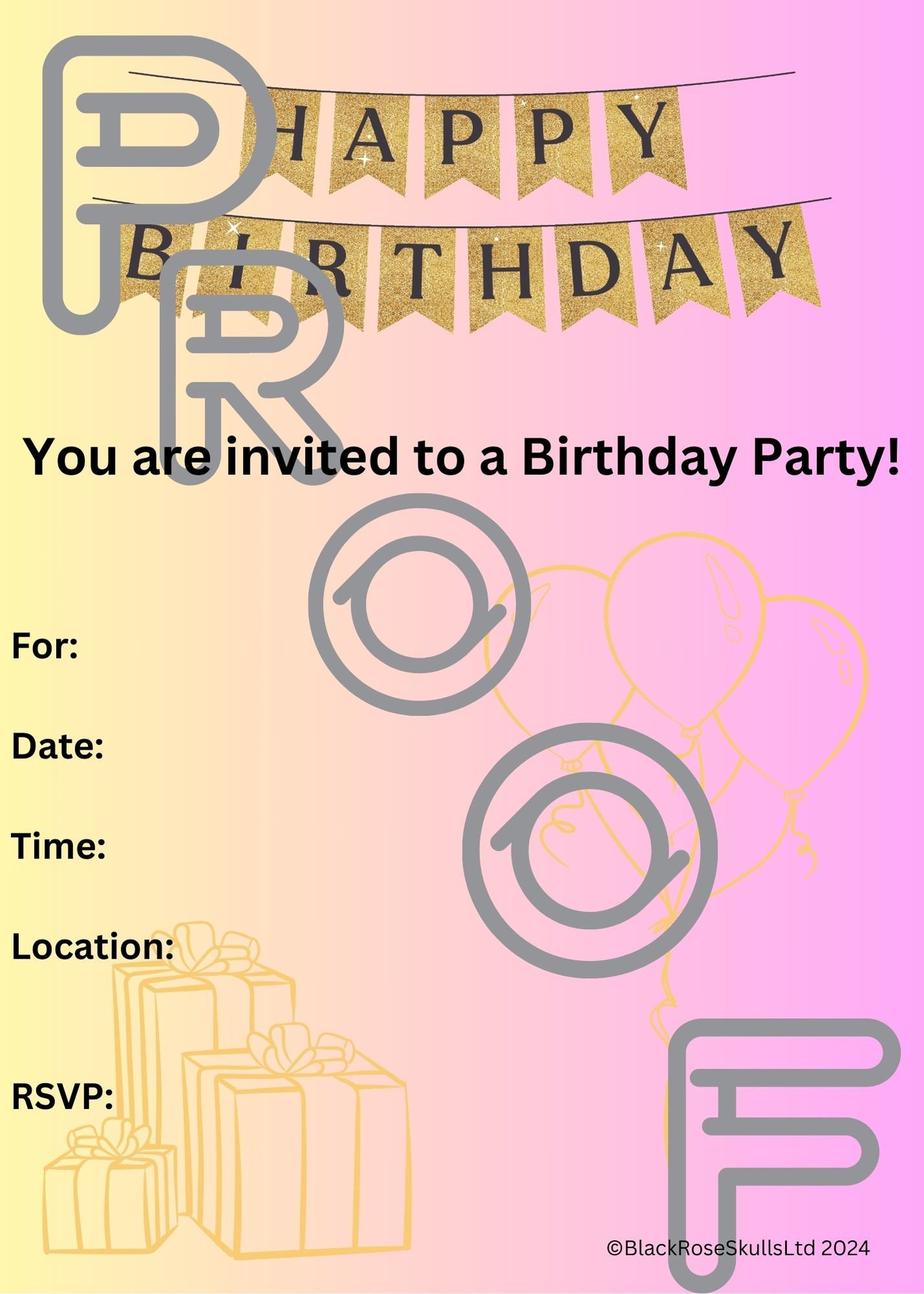 Gold & Pink Birthday Party Invitation: Simple, Reusable (PDF Digital Download)