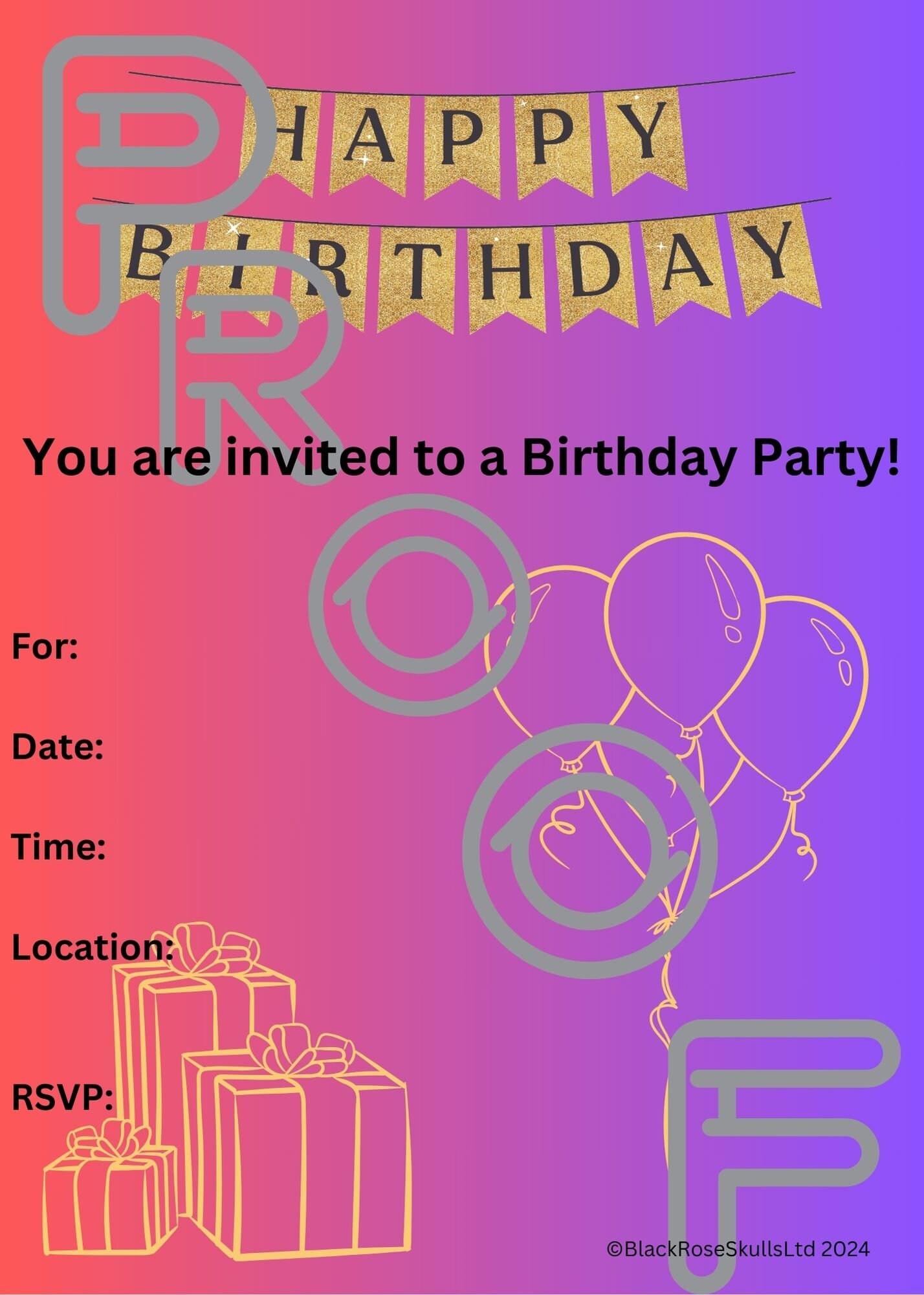 Birthday Party Invitation PDF Digital Download