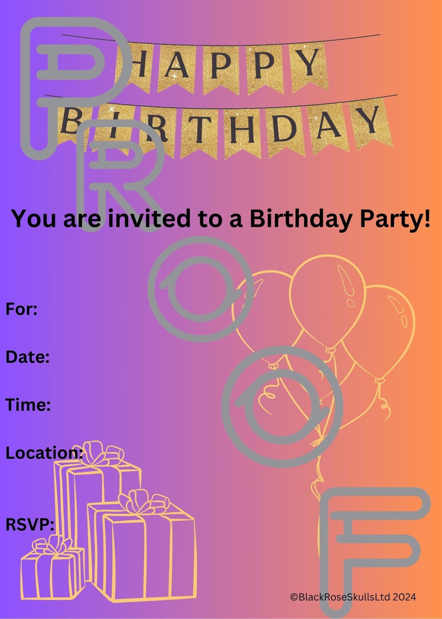 Gradient Birthday Party Invitation: Simple, Reusable (PDF Digital Download)