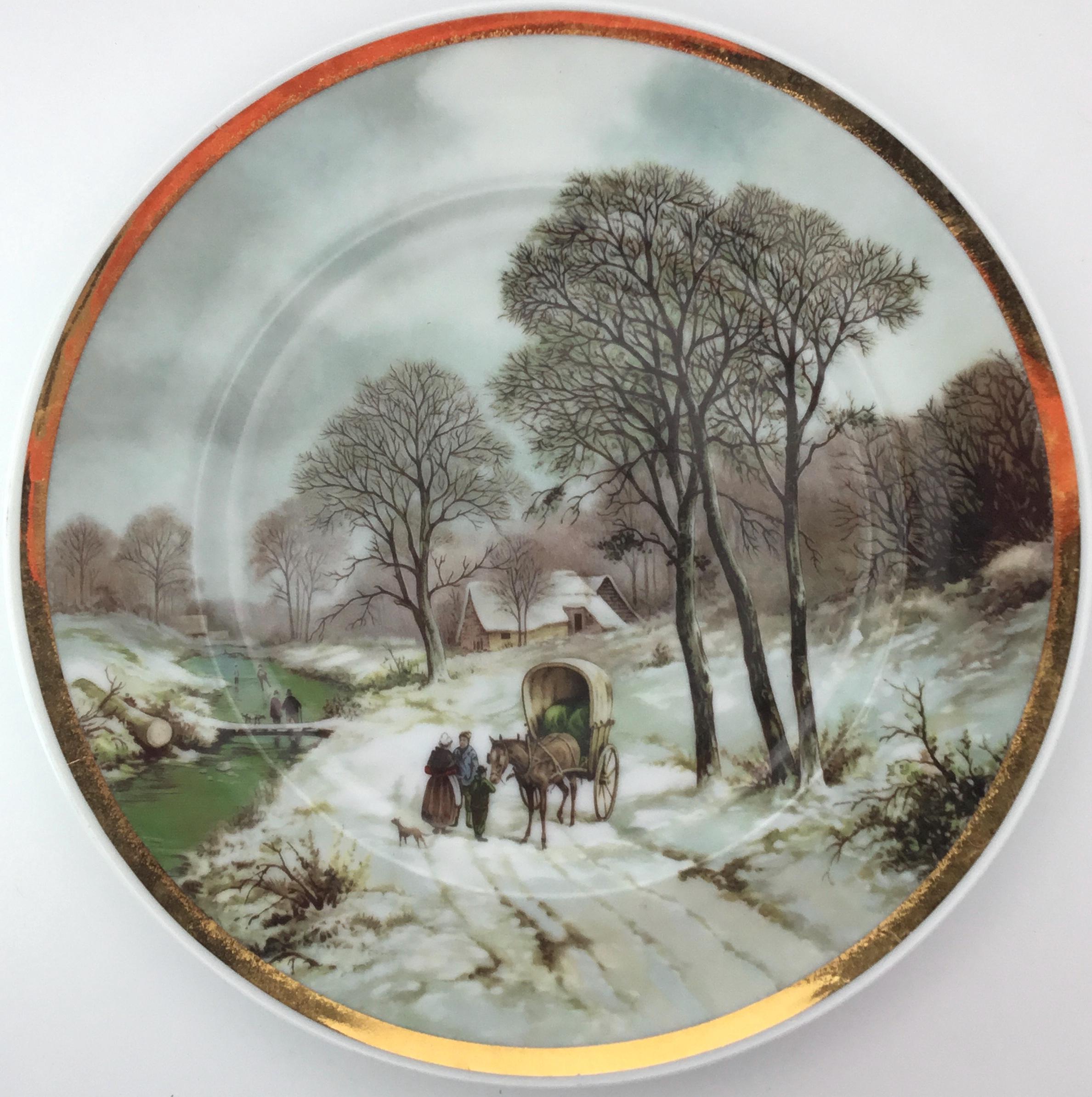 Newcastle Upon Tyne Decorative Plate: Winter Village Scape, B.C. Koekkoek Cart