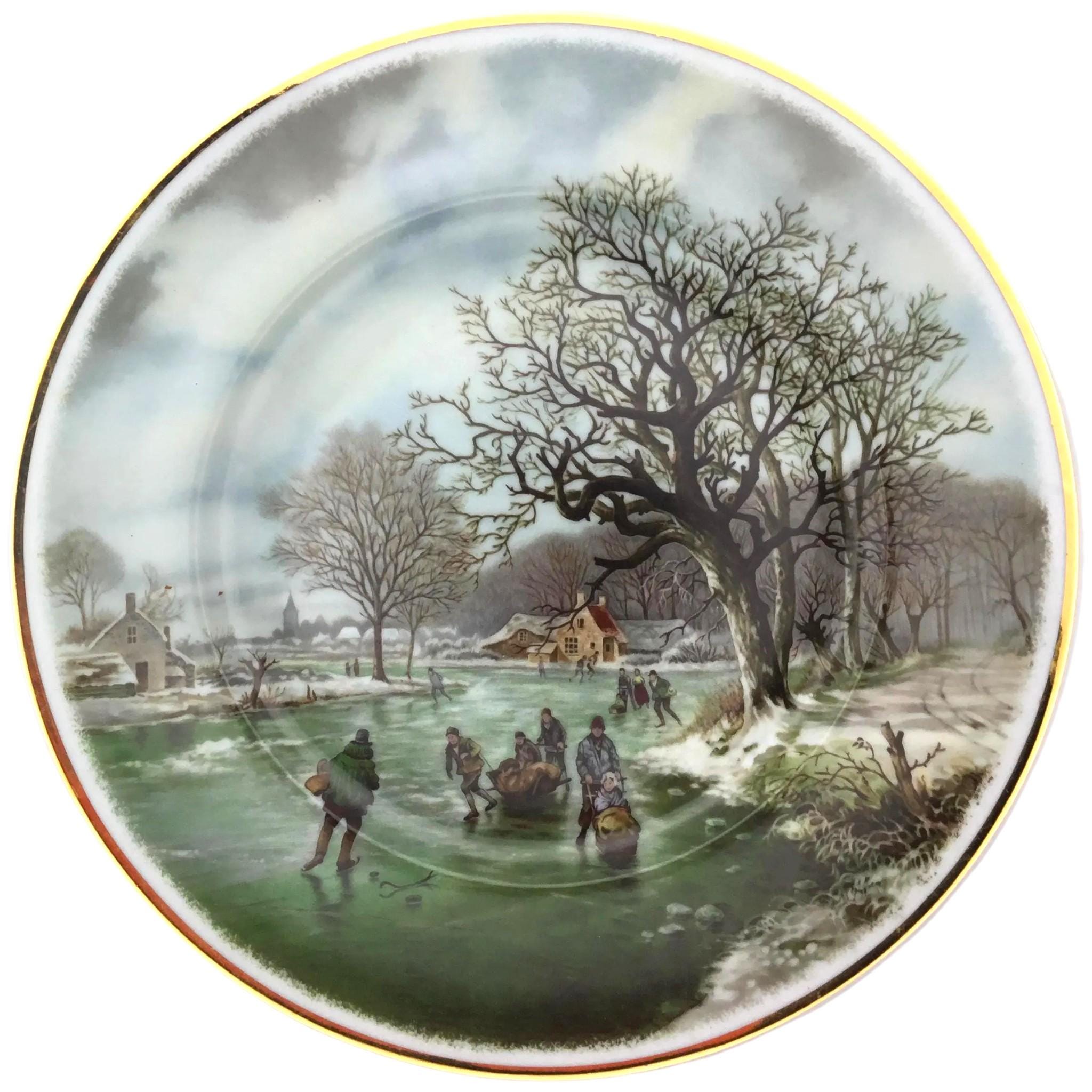 Newcastle Upon Tyne Decorative Plate: Winter Village Scape, B.C. Koekkoek Lake