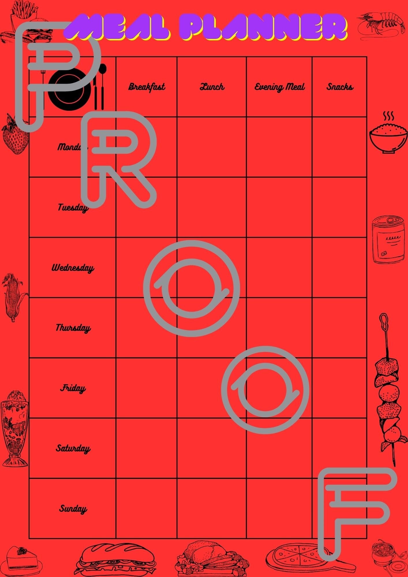 Weekly Meal Planner PDF Digital Download