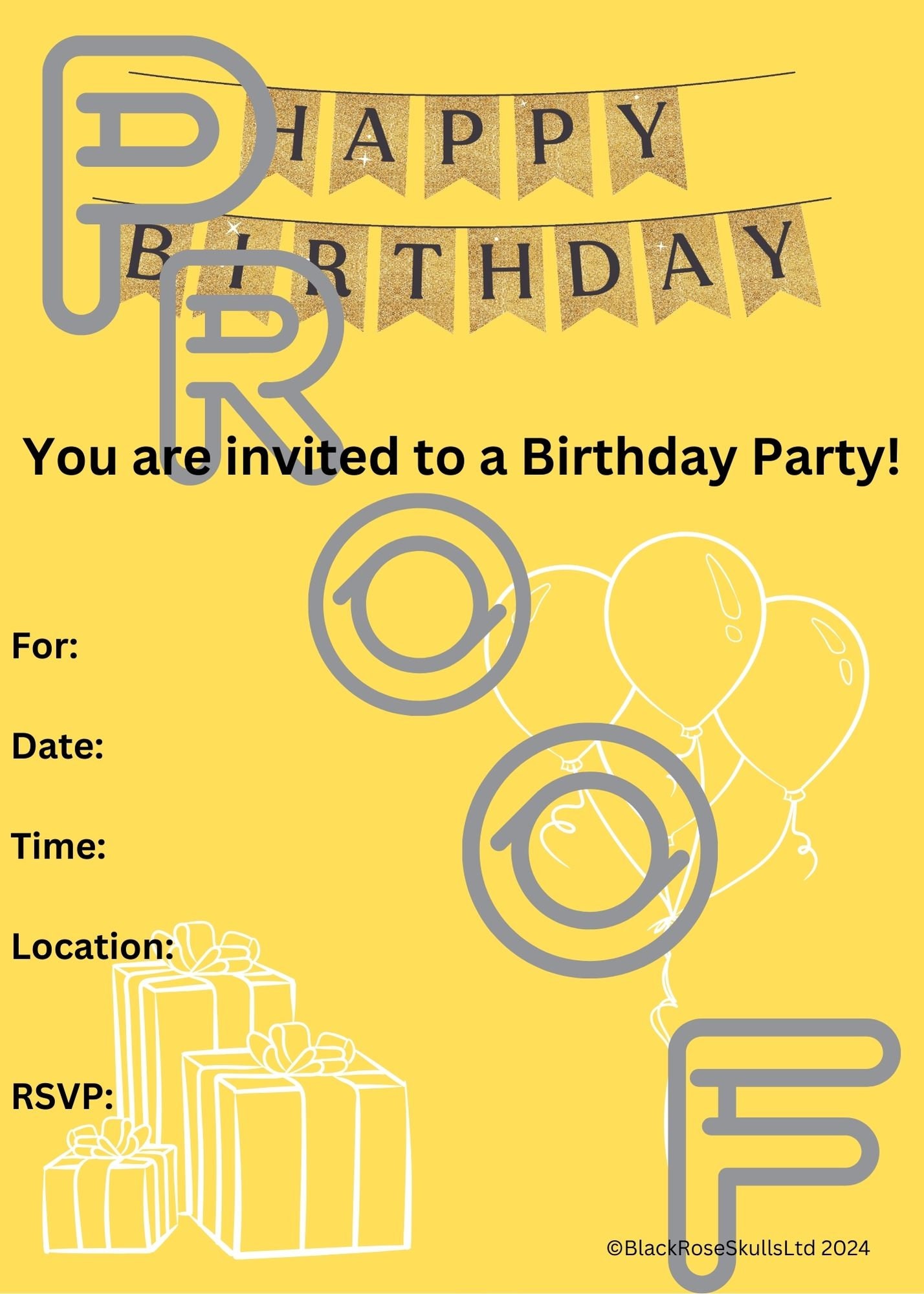 Reusable Birthday Party Invitation: Simple Yellow Design (PDF Digital Download)