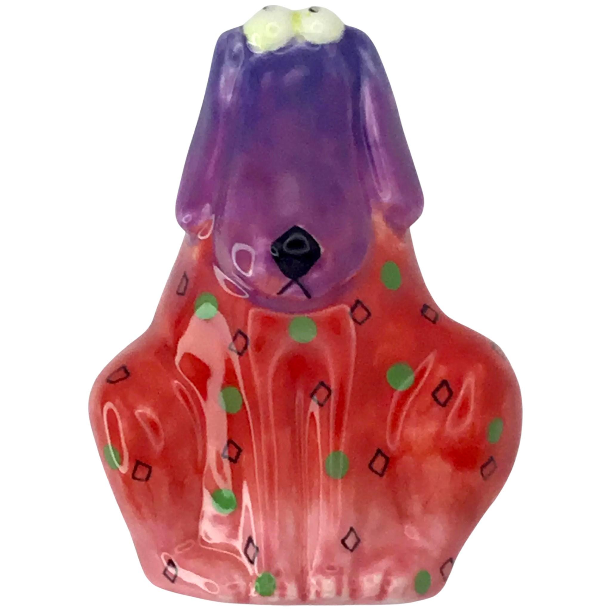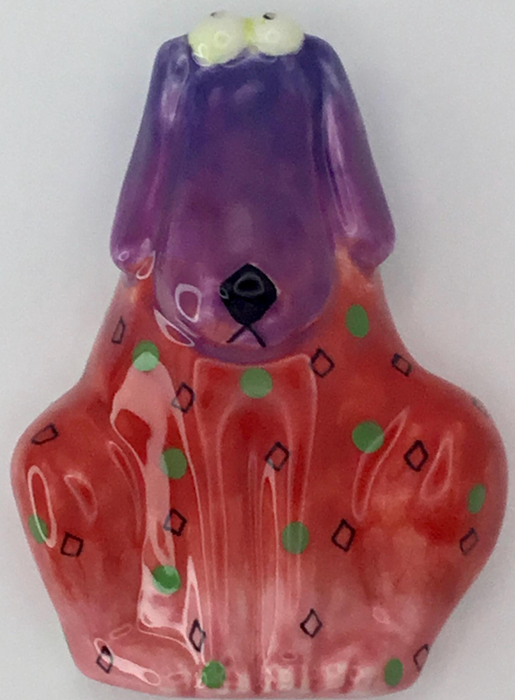 Studio DesignWorks Floppy Dog Ceramic Magnetic Fridge Pen Holder Red Purple