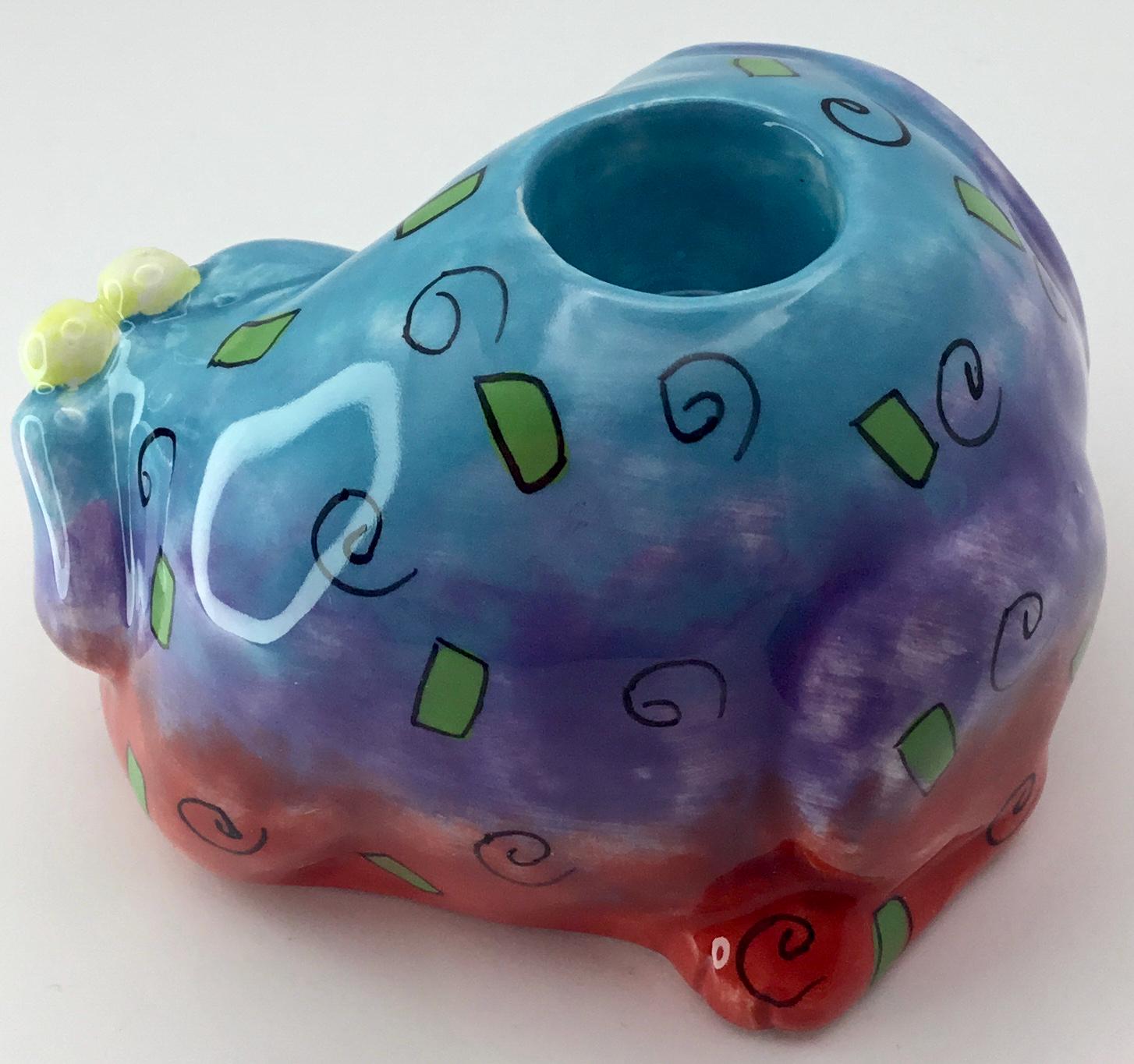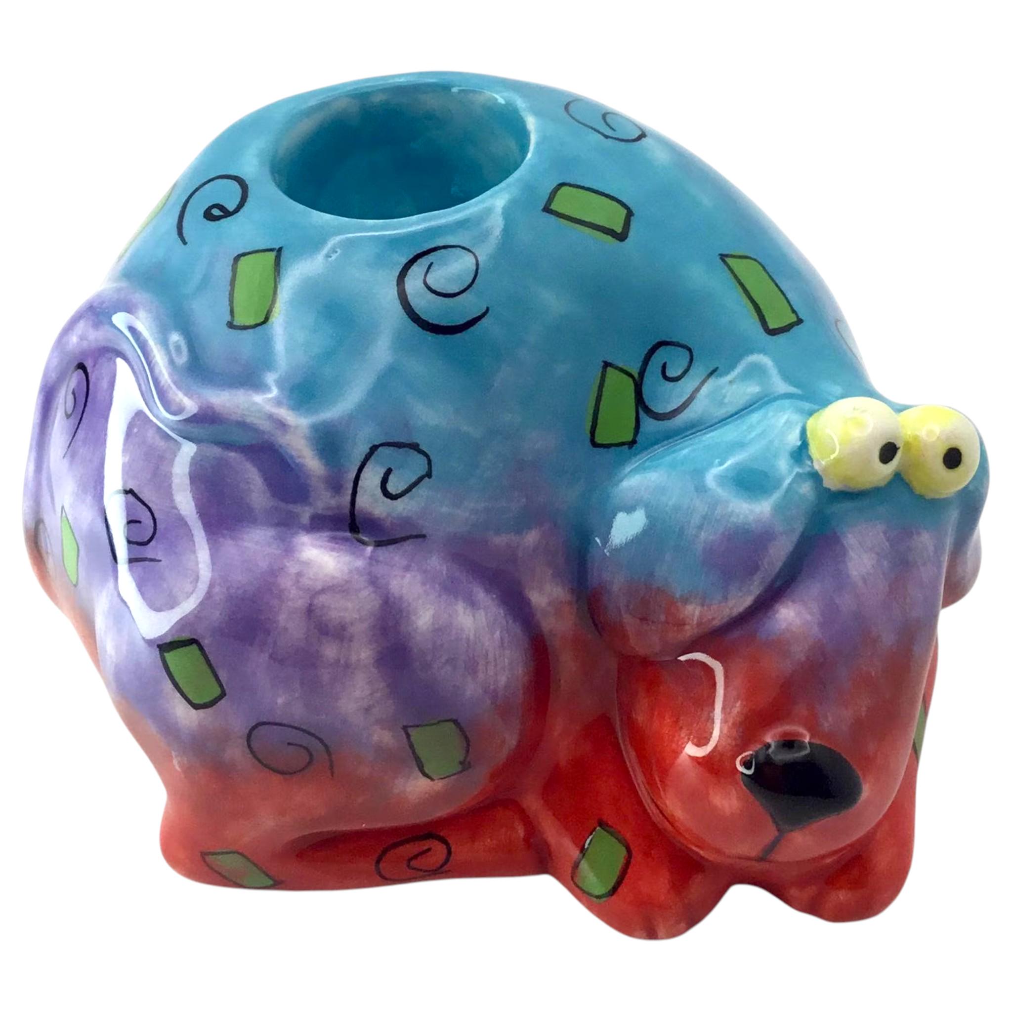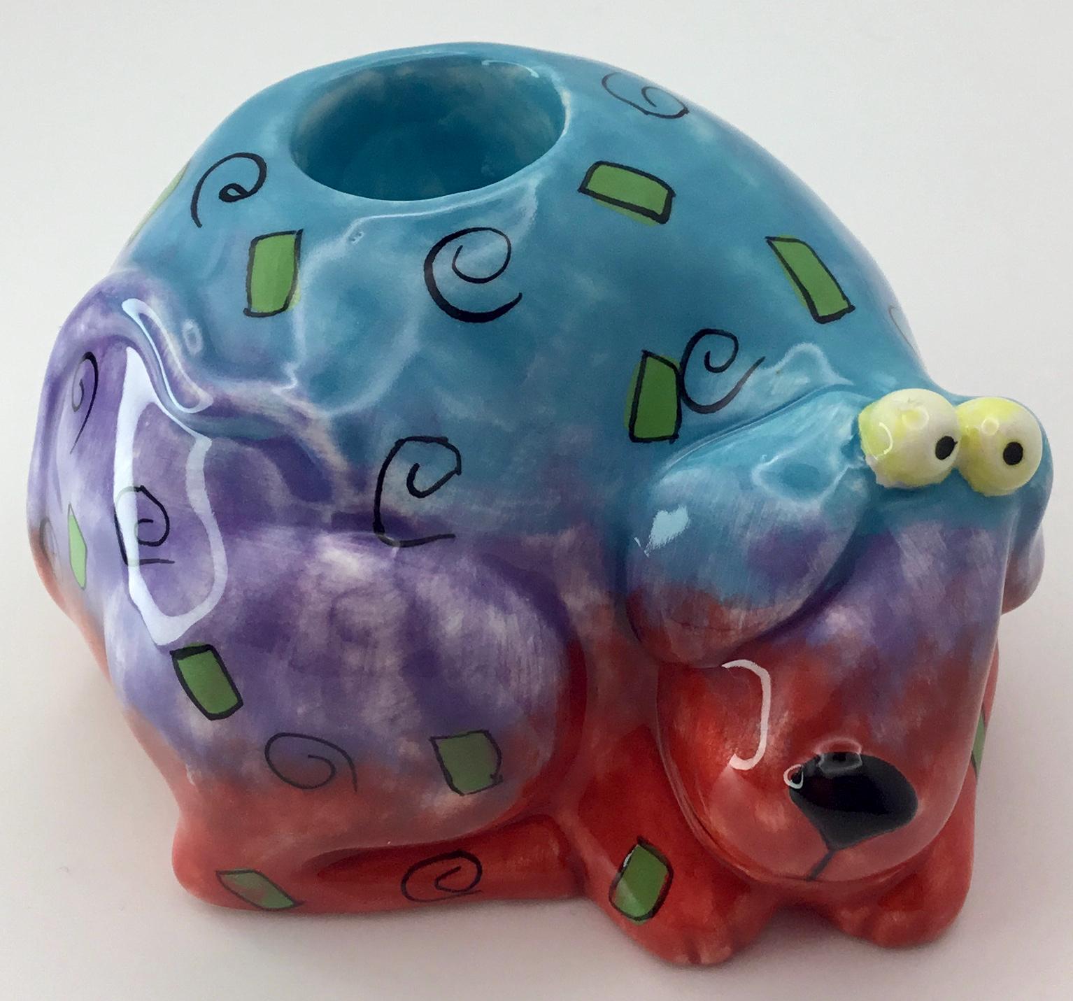 Studio DesignWorks Floppy Dogs Candle Holder: Ceramic Hand-Painted Pottery Blue/Purple/Red