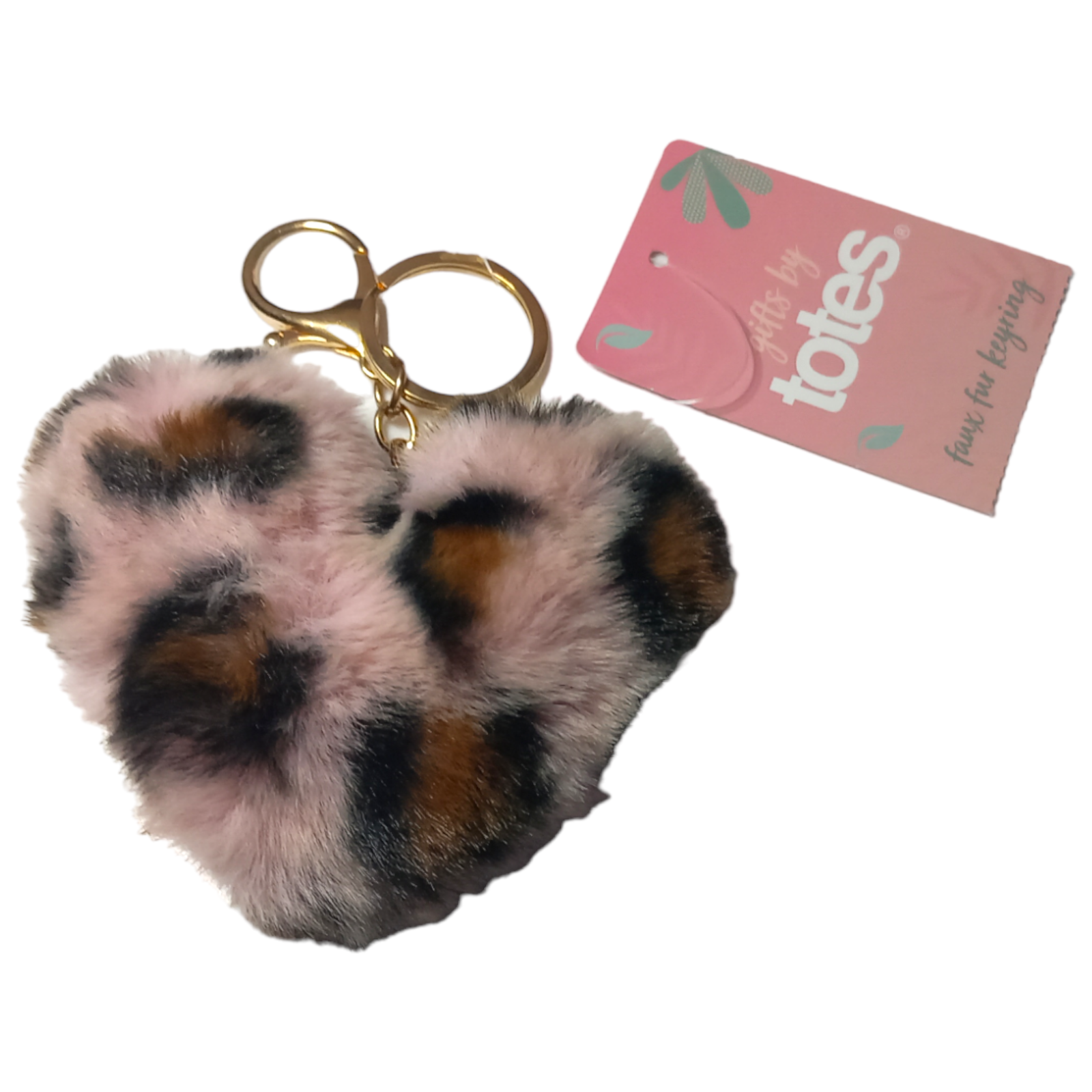 Totes Keyring Faux Fur Leopard Heart Hanging Fluffy Novelty Animal Ladies