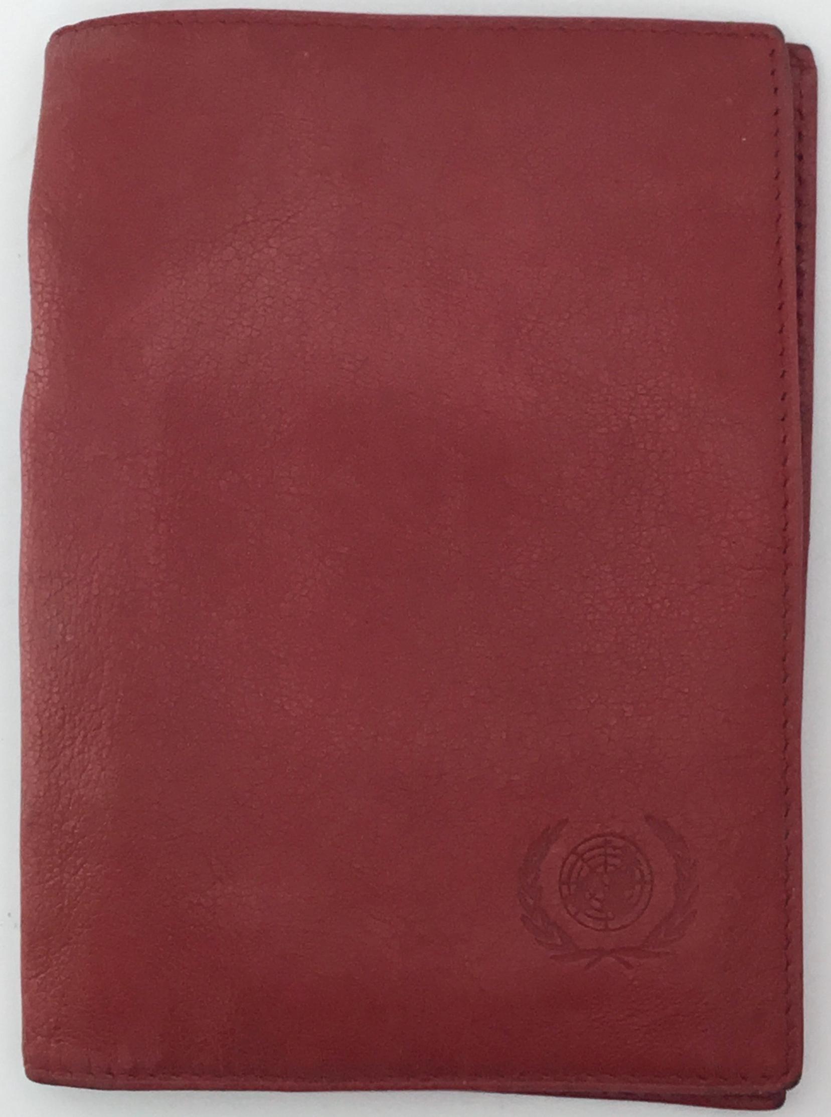 United Nations Logo Embossed Red Leather Fold Out Travel Wallet
