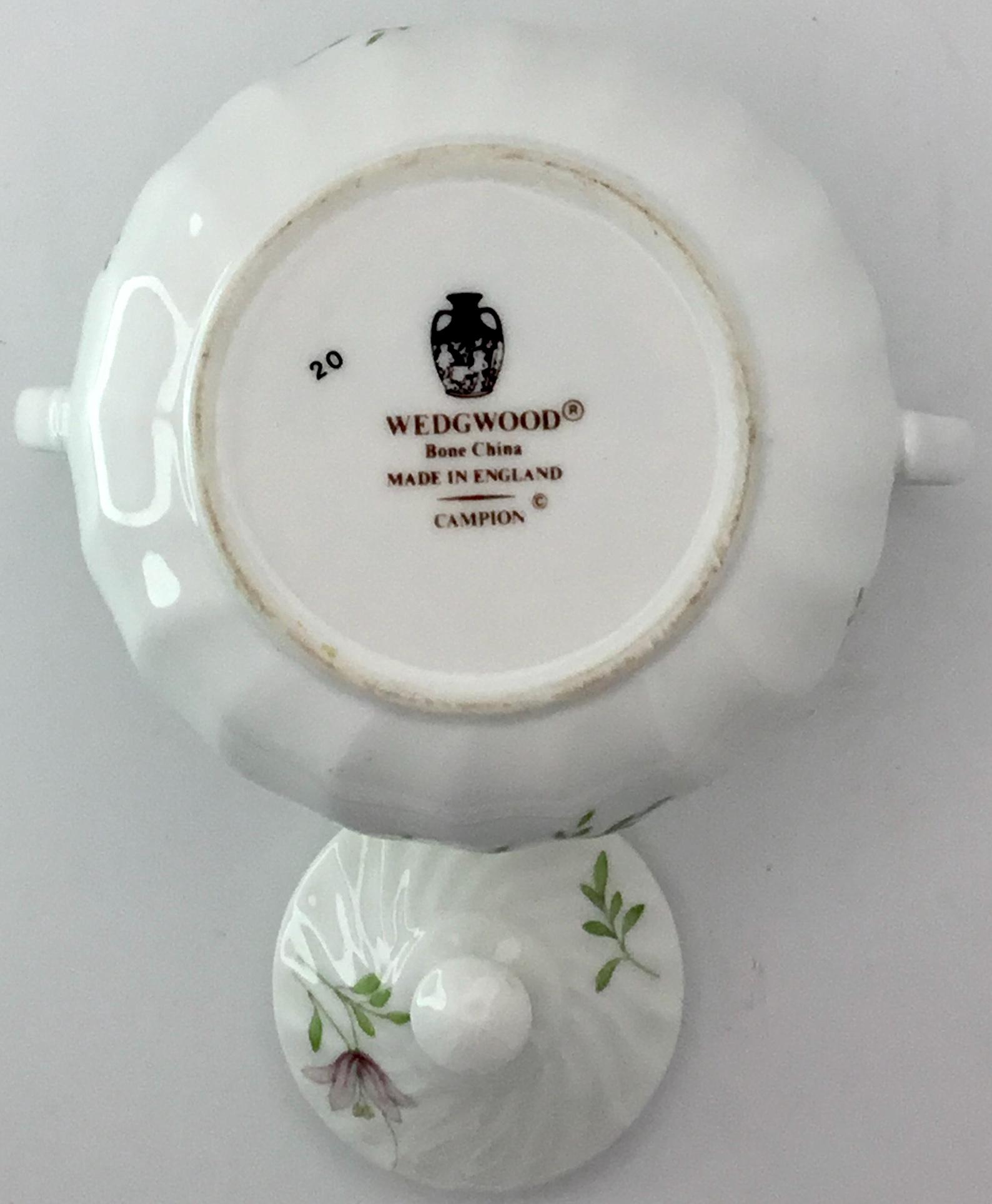 Vintage Wedgwood Campion Sugar Bowl: White Floral Bone China, England 1984-1993, Dual Handles